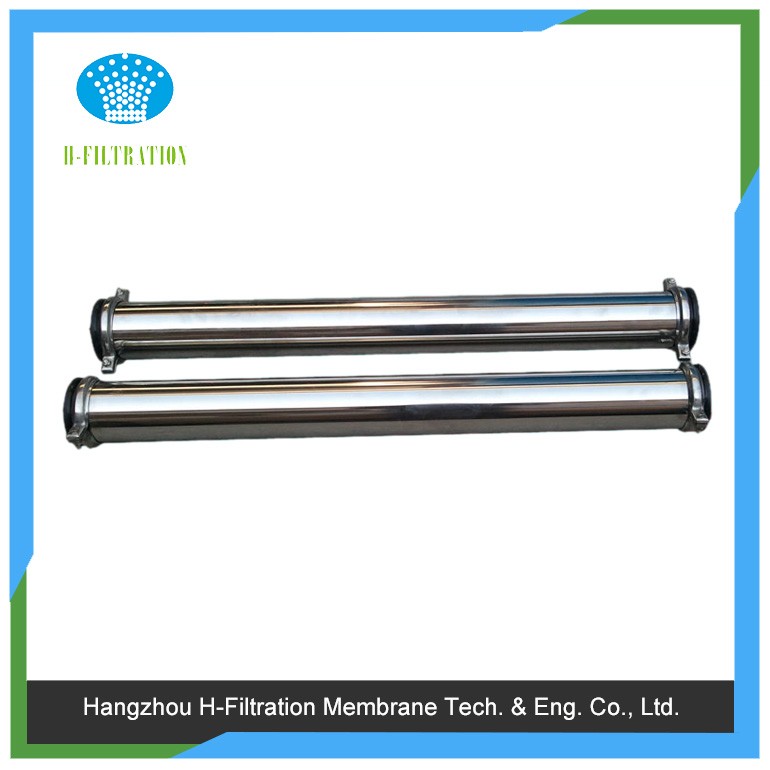 本產(chǎn)品為外壓式超濾膜,根據(jù)膜組件外壁的箭頭方向, 箭頭指向的端口是超濾透過液出液口,下部是電泳漆原液進液口,側(cè)面上面的口為電泳漆回流口,側(cè)面下面的口可以堵住不用;在電泳漆使用過程中可以使用水沖洗,超濾透過液沖洗,沖洗時從膜的回流口進入,原液進入口排出即可。當沖洗效果不是很好時,可以用有機酸和溶劑浸泡,循環(huán)沖洗清除膜中的油漆,從面恢復膜的通量。