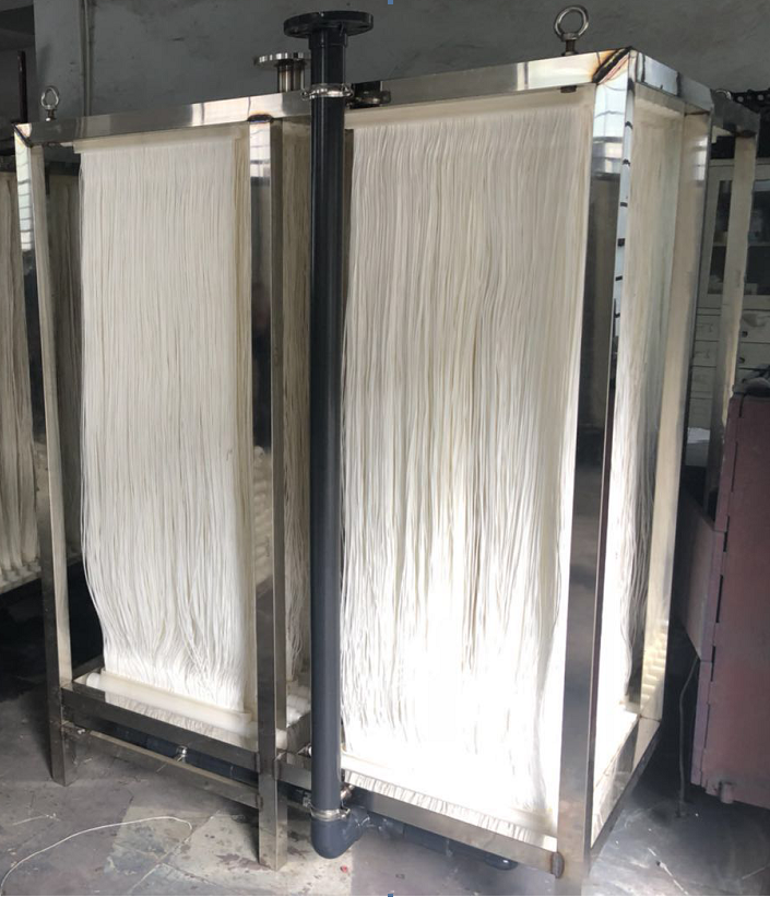9、 膜組件設(shè)有曝氣管,對(duì)膜絲進(jìn)行氣水沖刷,維護(hù)膜的通量,也可利用生化池的曝氣過程對(duì)膜纖維表面進(jìn)行清洗,保持穩(wěn)定的產(chǎn)水量。
